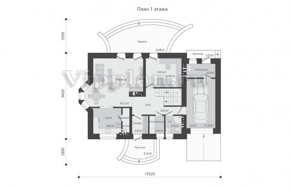 | Размеры дома: | 15.52м×9.42м |