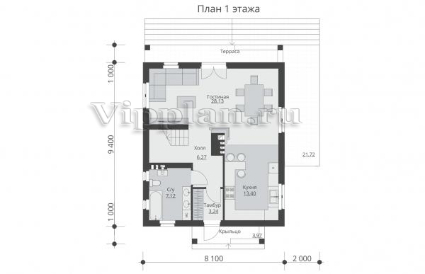 | Размеры дома: | 9.4м×8.1м |