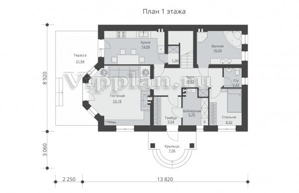 | Размеры дома: | 8.92м×13.82м |