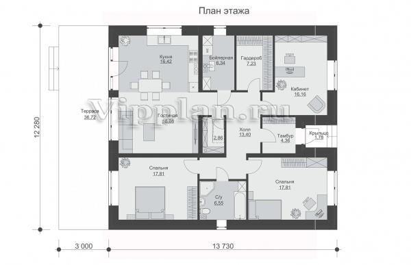 | Размеры дома: | 12.28м×13.73м |