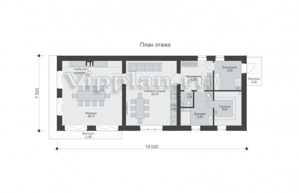 | Размеры дома: | 7.52м×19.02м |