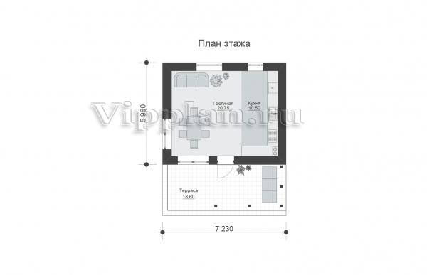 | Размеры дома: | 5.98м×7.23м |