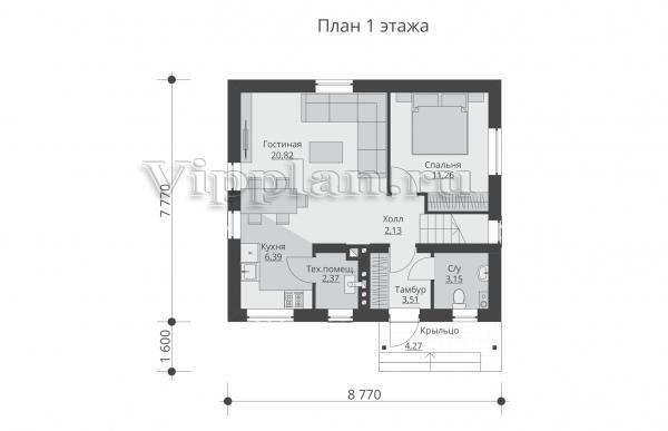 | Размеры дома: | 7.77м×8.77м |