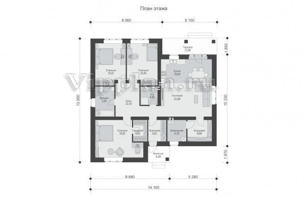 | Размеры дома: | 13.95м×14.16м |