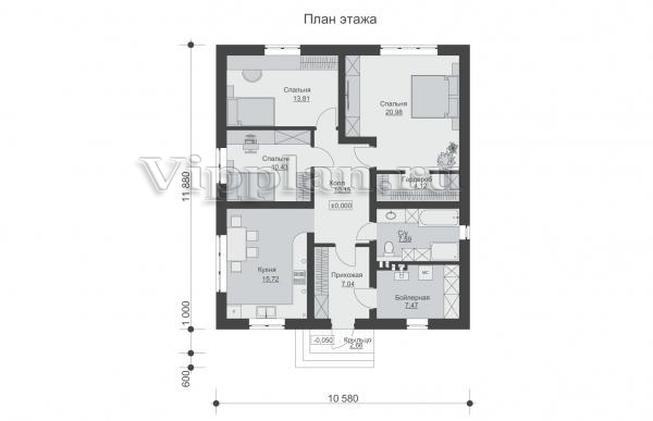 | Размеры дома: | 11.88м×10.58м |