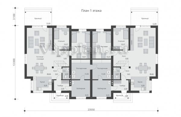 | Размеры дома: | 13м×23.6м |